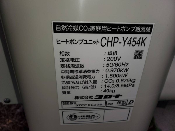 太田市小舞木町 コロナ自然冷媒CO2家庭用ヒートポンプ給湯機 貯湯ユニットCTU-37AY5K,ヒートポンプユニットCHO-Y454K エコキュート交換工事|群馬県のエコキュート専門交換工事店|群馬エコキュート交換ショップ補助金対応可能