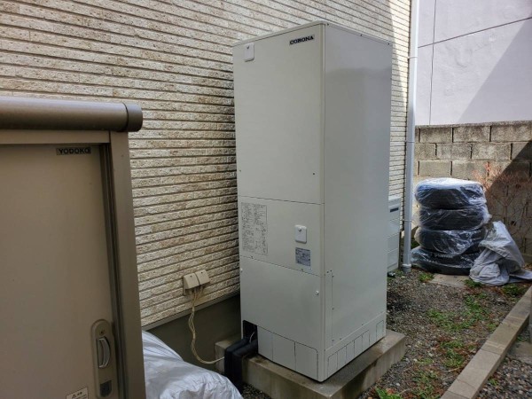 太田市小舞木町 コロナ自然冷媒CO2家庭用ヒートポンプ給湯機 貯湯ユニットCTU-37AY5K、ヒートポンプユニットCHP-Y454K エコキュート交換工事