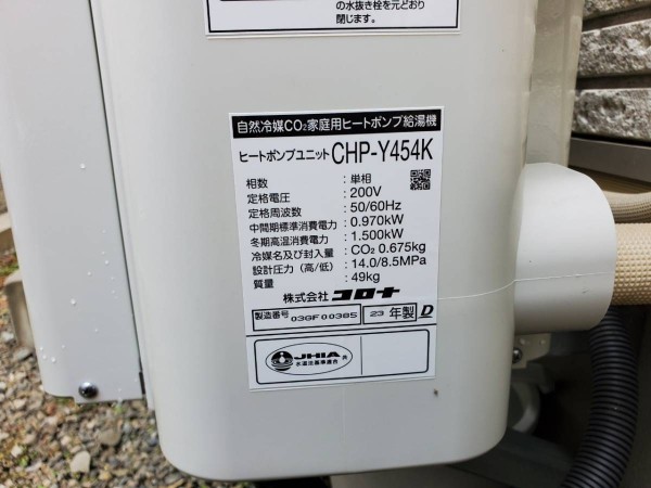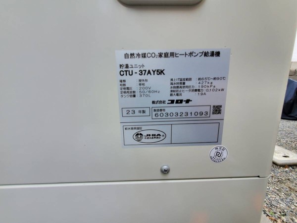 太田市小舞木町 コロナ自然冷媒CO2家庭用ヒートポンプ給湯機 貯湯ユニットCTU-37AY5K、ヒートポンプユニットCHP-Y454K エコキュート交換工事|群馬県のエコキュート専門交換工事店|群馬エコキュート交換ショップ補助金対応可能