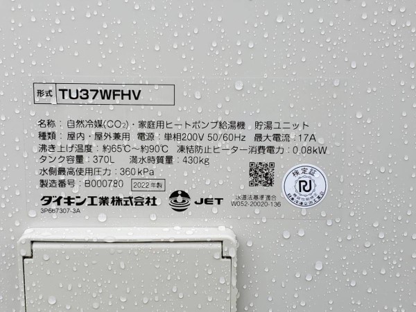 太田市新田金井町 ダイキン自然冷媒(CO2)・家庭用ヒートポンプ給湯機 貯湯ユニットTU37WFHV エコキュート交換工事|群馬県のエコキュート専門交換工事店|群馬エコキュート交換ショップ補助金対応可能