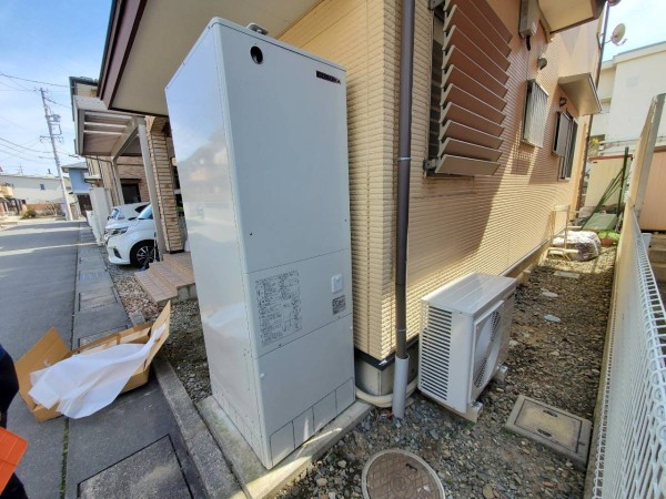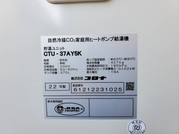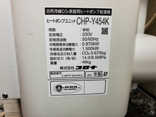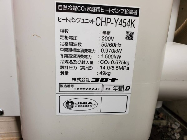 伊勢崎市緑町 コロナ自然冷媒CO2家庭用ヒートポンプ給湯機 貯湯ユニットCTU-37AY5K、ヒートポンプユニットCHP-Y454K エコキュート交換工事
