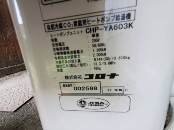 沼田市恩田町 コロナ自然冷媒CO2家庭用ヒートポンプ給湯機 ヒートポンプユニットCHP-YA603K エコキュート交換工事