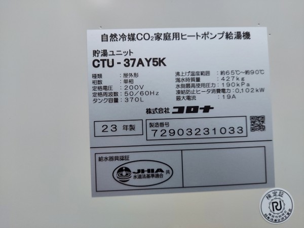 沼田市恩田町 コロナ自然冷媒CO2家庭用ヒートポンプ給湯機貯湯ユニットCTU-37AY5K エコキュート交換工事