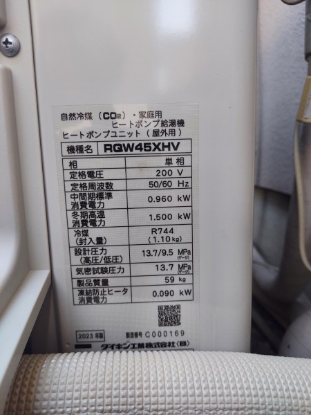 前橋市青葉町 コロナエコキュートCHP-456K→ダイキン自然冷媒CO2家庭用ヒートポンプ給湯機ヒートポンプユニットRGW45XHV エコキュート交換工事