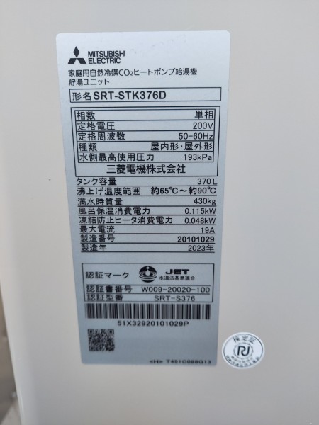 沼田市清水町 三菱電機家庭用自然冷媒CO2ヒートポンプ給湯機貯湯ユニットSRT-STK376D エコキュート交換工事|群馬県のエコキュート専門交換工事店|群馬エコキュート交換ショップ補助金対応可能