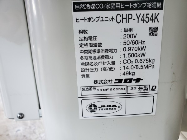 渋川市有馬 コロナ自然冷媒CO2家庭用ヒートポンプ給湯機ヒートポンプユニットCHP-Y454K エコキュート交換工事|群馬県のエコキュート専門交換工事店|群馬エコキュート交換ショップ補助金対応可能