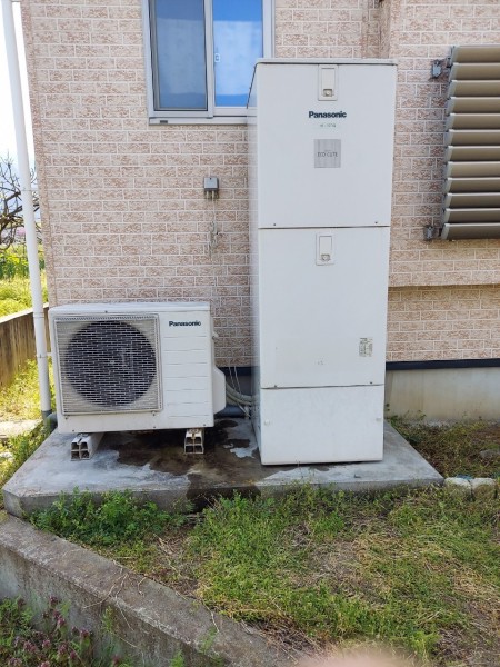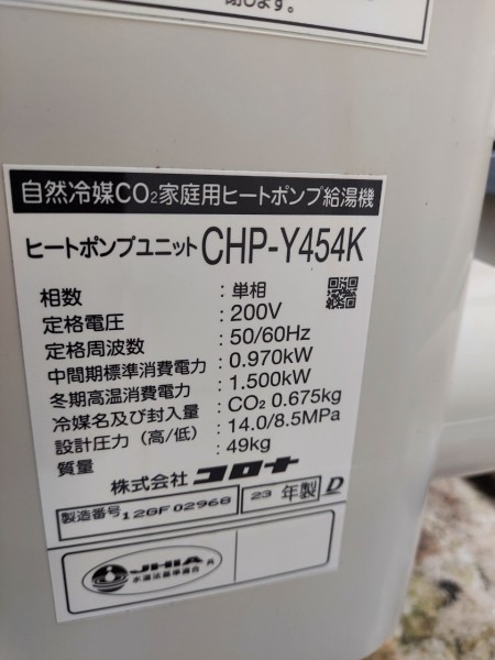 富岡市田篠 パナソニックエコキュート→コロナ自然冷媒CO2家庭用ヒートポンプ給湯機貯湯ユニットCTU-37AY5K-B、ヒートポンプユニットCHP-Y454K エコキュート交換工事