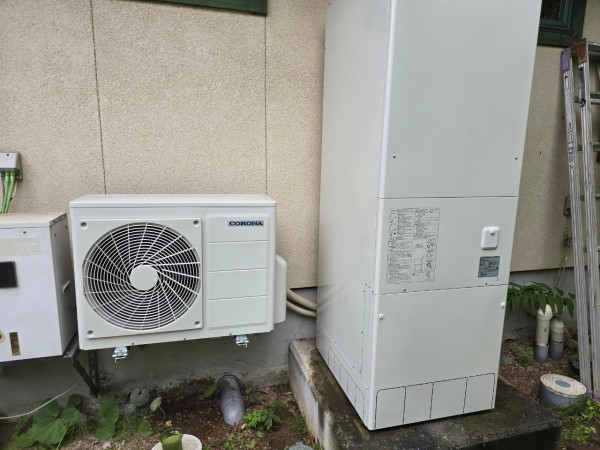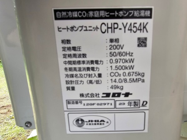 富岡市小桑原 コロナ自然冷媒CO2家庭用ヒートポンプ給湯機ヒートポンプユニットCHP-Y454K エコキュート交換工事