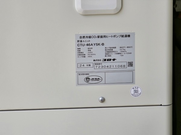 沼田市清水町 コロナ自然冷媒CO2家庭用ヒートポンプ給湯機貯湯ユニットCTU-46AY5K-B エコキュート交換工事