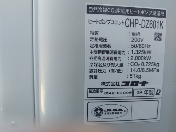 富岡市小桑原 コロナエコキュート→コロナ自然冷媒CO2家庭用ヒートポンプ給湯機ヒートポンプユニットCHP-DZ601K エコキュート交換工事