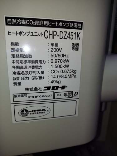 沼田市清水町 コロナ自然冷媒CO2家庭用ヒートポンプ給湯機 ヒートポンプユニットCHP-DZ451K エコキュート交換工事