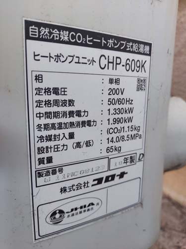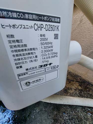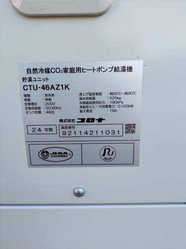 館林市若宮町 コロナエコキュートCHP-609K→コロナ自然冷媒CO2家庭用ヒートポンプ給湯機ヒートポンプユニットCHP-DZ601K、貯湯ユニットCTU-46AZ1K エコキュート交換工事