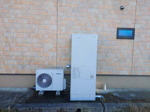 館林市若宮町 コロナ自然冷媒CO2家庭用ヒートポンプ給湯機ヒートポンプユニットCHP-DZ601K、貯湯ユニットCTU-46AZ1K エコキュート交換工事