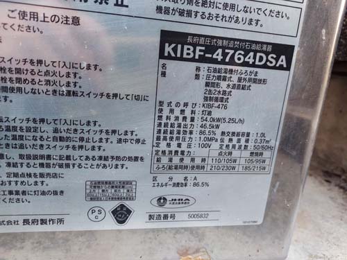 館林市南美園町 長府製作所給湯器KIBF-4764DSA→コロナ自然冷媒CO2家庭用ヒートポンプ給湯機ヒートポンプユニットCHP-DZ601K エコキュート交換工事