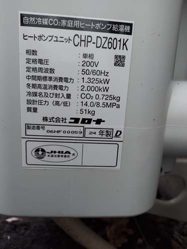 館林市南美園町 コロナ自然冷媒CO2家庭用ヒートポンプ給湯機ヒートポンプユニットCHP-DZ601K エコキュート交換工事|群馬県のエコキュート専門交換工事店|群馬エコキュート交換ショップ補助金対応可能