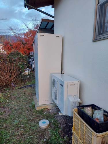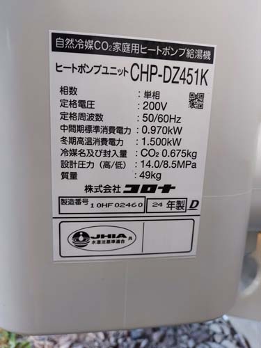 トップページ > 工事事例一覧 > 館林市楠町 コロナ自然冷媒CO2家庭用ヒートポンプ給湯機貯湯ユニットCTU-37AZ1K、ヒートポンプユニットCHP-DZ451K エコキュート交換工事