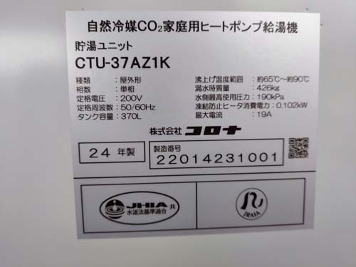 館林市楠町 コロナ自然冷媒CO2家庭用ヒートポンプ給湯機貯湯ユニットCTU-37AZ1K、ヒートポンプユニットCHP-DZ451K エコキュート交換工事|群馬県のエコキュート専門交換工事店|群馬エコキュート交換ショップ補助金対応可能