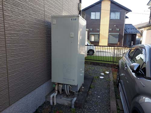トップページ > 工事事例一覧 > 高崎市嘉多町 コロナ自然冷媒CO2家庭用ヒートポンプ給湯機 ヒートポンプユニットCHP-DZ451K エコキュート交換工事