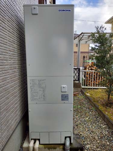 みどり市笠懸町鹿 コロナエコキュート→コロナ自然冷媒CO2家庭用ヒートポンプ給湯機 ヒートポンプユニットCHP-DZ451K エコキュート交換工事