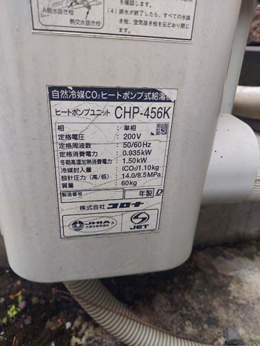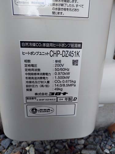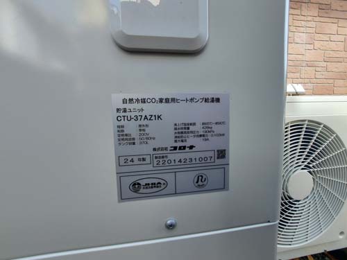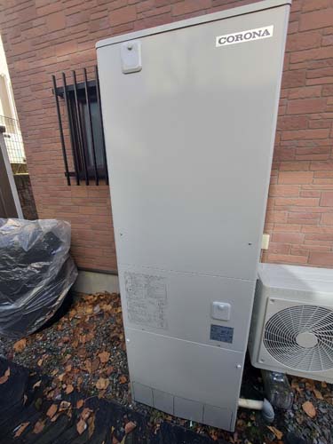 高崎市剣崎町 コロナ自然冷媒CO2家庭用ヒートポンプ給湯機 ヒートポンプユニットCHP-456K→コロナ自然冷媒CO2家庭用ヒートポンプ給湯機貯湯ユニットCTU-37AZ1K、ヒートポンプユニットCHP-DZ451K エコキュート交換工事