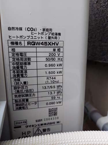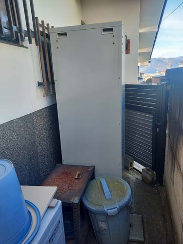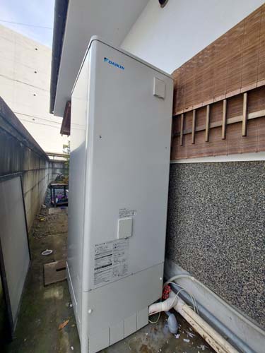高崎市嘉多町 コロナ自然冷媒CO2家庭用ヒートポンプ給湯機 ヒートポンプユニットCHP-458K→ダイキン工業自然冷媒CO2家庭用ヒートポンプ給湯機貯湯ユニットTU37XFHV、ヒートポンプユニットRQW45XHV エコキュート交換工事