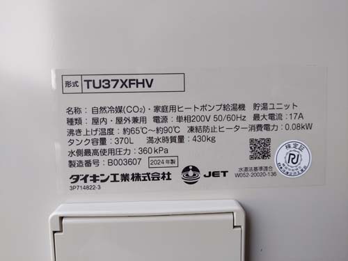 高崎市嘉多町 ダイキン工業自然冷媒CO2家庭用ヒートポンプ給湯機貯湯ユニットTU37XFHV、ヒートポンプユニットRQW45XHV エコキュート交換工事