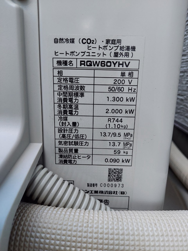 渋川市有馬 ダイキン自然冷媒CO2家庭用ヒートポンプユニットRQW60YHV エコキュート交換工事|群馬県のエコキュート専門交換工事店|群馬エコキュート交換ショップ補助金対応可能