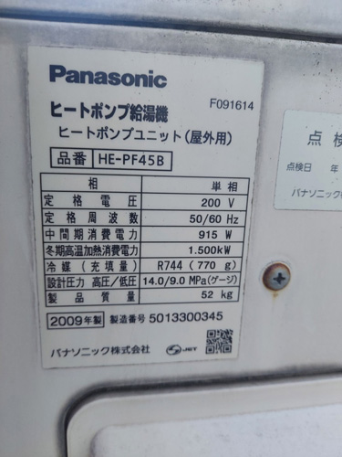 太田市新田金井町 パナソニックヒートポンプ給湯機 ヒートポンプユニットHE-PF45B→コロナ自然冷媒CO2家庭用ヒートポンプ給湯機 ヒートポンプユニットCHP-DZ451K エコキュート交換工事