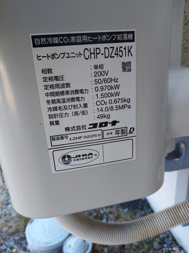 太田市新田金井町 コロナ自然冷媒CO2家庭用ヒートポンプ給湯機 ヒートポンプユニットCHP-DZ451K エコキュート交換工事|群馬県のエコキュート専門交換工事店|群馬エコキュート交換ショップ補助金対応可能