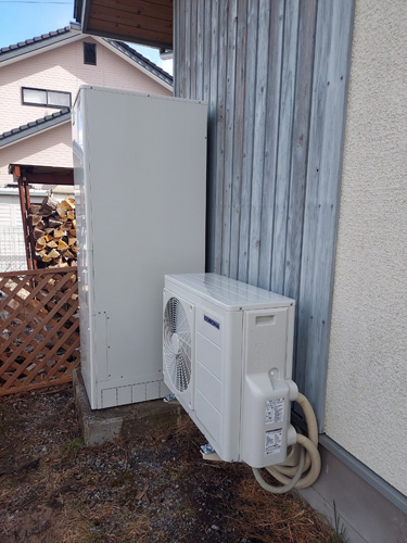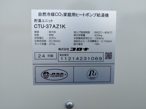 トップページ > 工事事例一覧 > 太田市小舞木町 コロナ自然冷媒CO2家庭用ヒートポンプ給湯機貯湯ユニットCTU-37AZ1K、ヒートポンプユニットCHP-DZ451K エコキュート交換工事