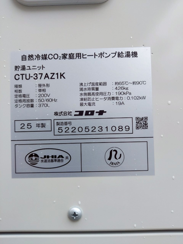 トップページ > 工事事例一覧 > 安中市野殿 コロナ自然冷媒CO2家庭用ヒートポンプ給湯機貯湯ユニットCTU-37AZ1K、ヒートポンプユニットCHP-DZ451K エコキュート交換工事
