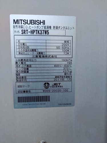 安中市中宿 三菱電機自然冷媒CO2ヒートポンプ給湯機 貯湯タンクユニットSRT-HPTK37W5→パナソニック家庭用ヒートポンプ給湯機 ヒートポンプユニットHE-PLS45L エコキュート交換工事
