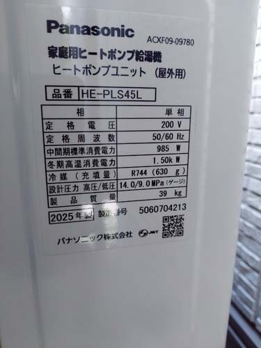 安中市中宿 パナソニック家庭用ヒートポンプ給湯機 ヒートポンプユニットHE-PLS45L エコキュート交換工事|群馬県のエコキュート専門交換工事店|群馬エコキュート交換ショップ補助金対応可能